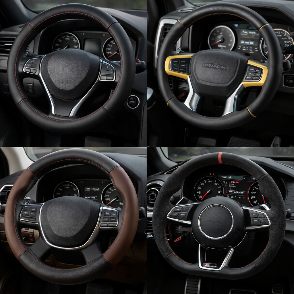 Ela é uma capa de volante premium perfeita para motoristas que buscam qualidade e elegância, oferecendo um acabamento profissional com costura manual, textura antiderrapante e design esportivo moderno.